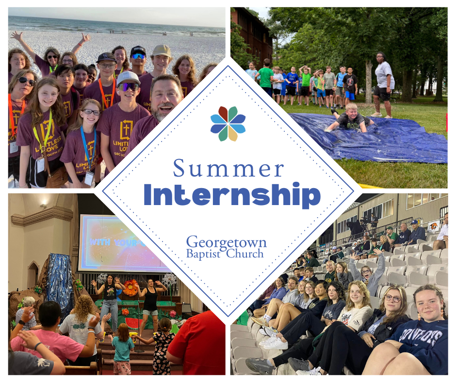 The summer Youth & Children’s Ministry Intern program at Georgetown Baptist Church is an 8-10 week paid position designed to help young adults explore an interest in ministry. Interns are expected to assist with the planning, production, and leadership of various summer activities for elementary, middle, and high school aged students and are expected to contribute 20-30 hours per week. Interns will have a number of responsibilities according to the needs of the youth & children’s ministry and the areas of strength of the candidate. (Housing accommodations may also be available if needed.)